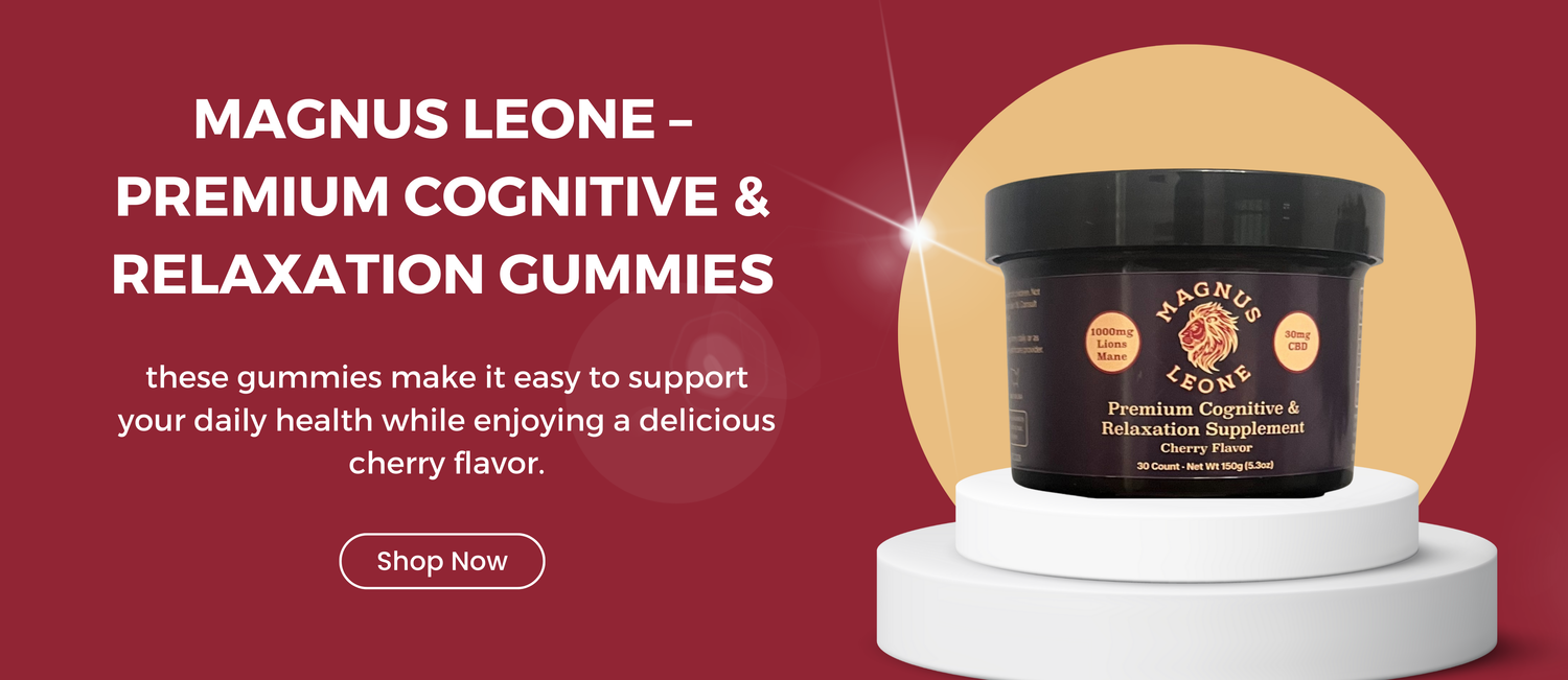 Magnus Leone Gummies are a premium cognitive and relaxation supplement that blend 1,000 mg of Lion’s Mane mushroom with 30 mg of CBD in every serving.
